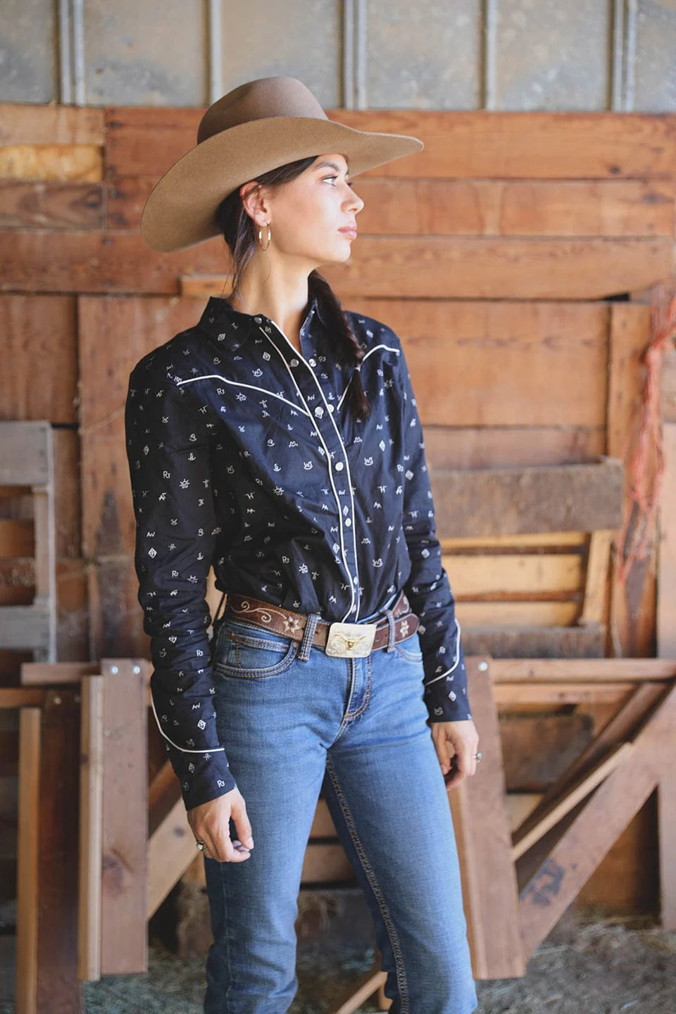 The Cattle Brand Shirt is a western classic designed for cowboys and cowgirls who love authentic style with everyday wearability. Made from 100% cotton, this shirt features pearl top snaps, snap wrist cuffs, and a bold allover cattle brand print for a rugged, standout look. Practical details like modesty snaps make it as functional as it is iconic.